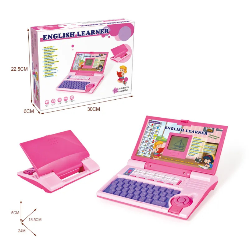 Help children master essential reading, math, and language skills with the English Learner Kids Laptop QX-1101. Packed with over 20 educational activities, this interactive toy teaches the alphabet, numbers, words, math exercises, spelling, music, logic, and simple games. The real-typing keyboard and LCD screen make learning engaging and fun, while the clear, friendly layout helps young learners navigate easily.