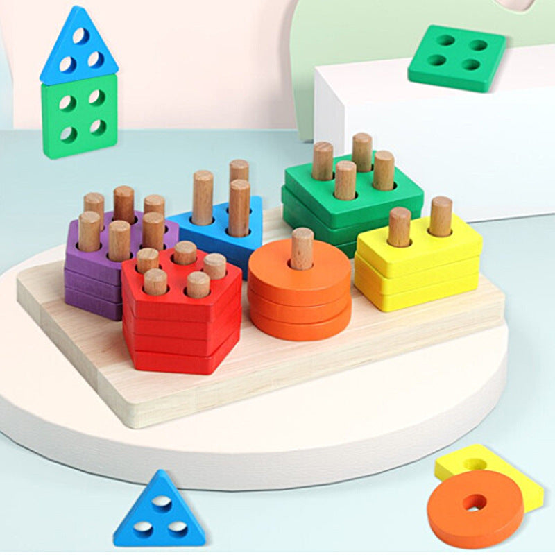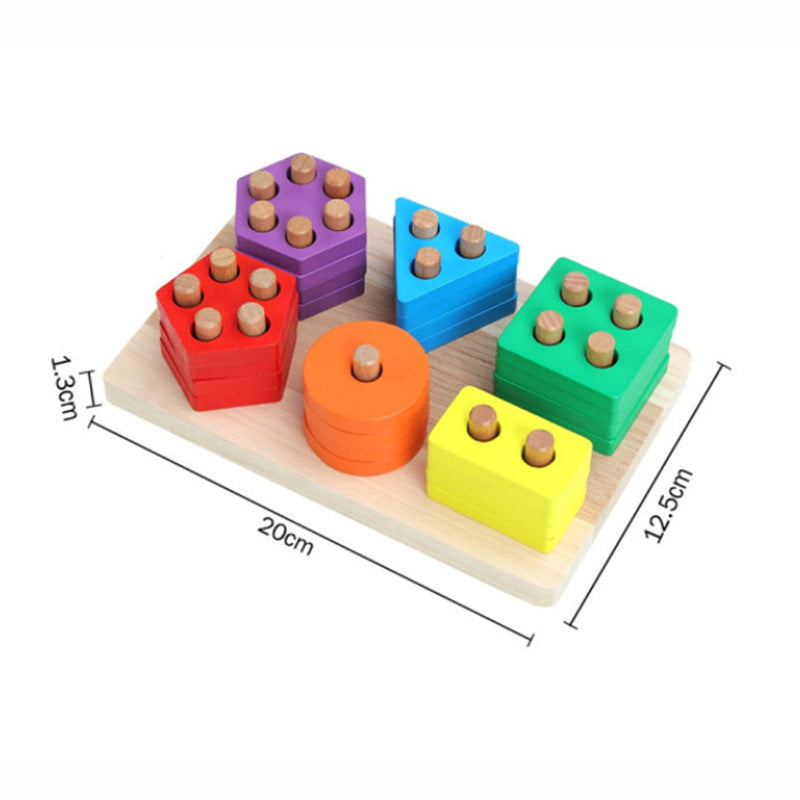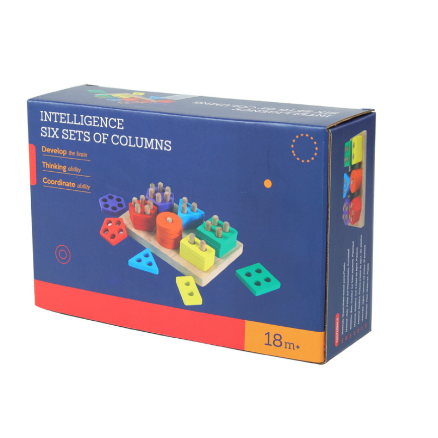 Intelligence Six Sets of Columns – Wooden Shape Sorting & Stacking Toy (18+ Months)